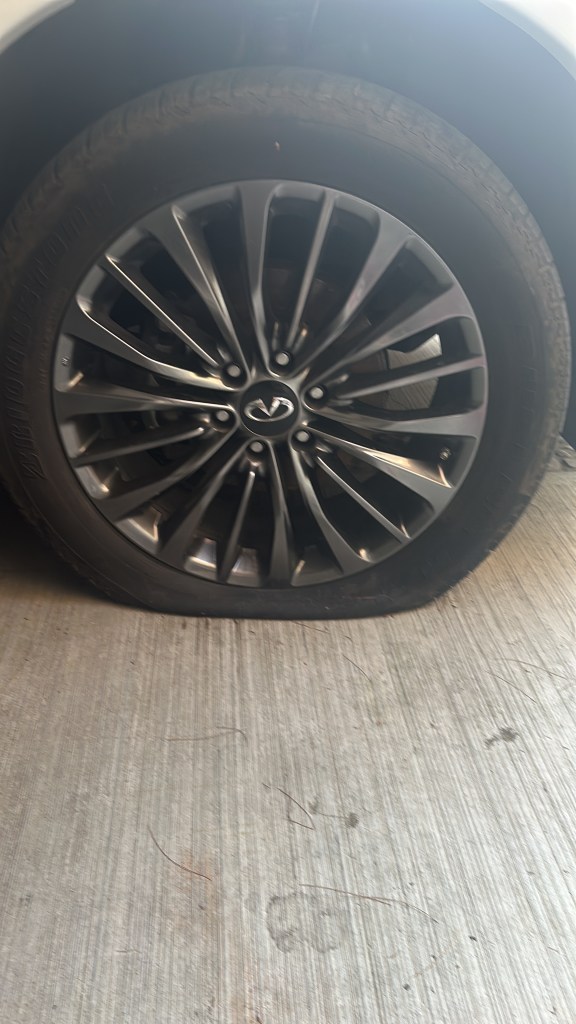 Llanta no solo ponchada: agujerada. De esas heridas limpias, precisas, como si el asfalto hubiera decidido clavarme una lección con exactitud quirúrgica. Bienvenidos a la Ciudad de México, donde los baches son portales interdimensionales y si te descuidas apareces en Hawái.
